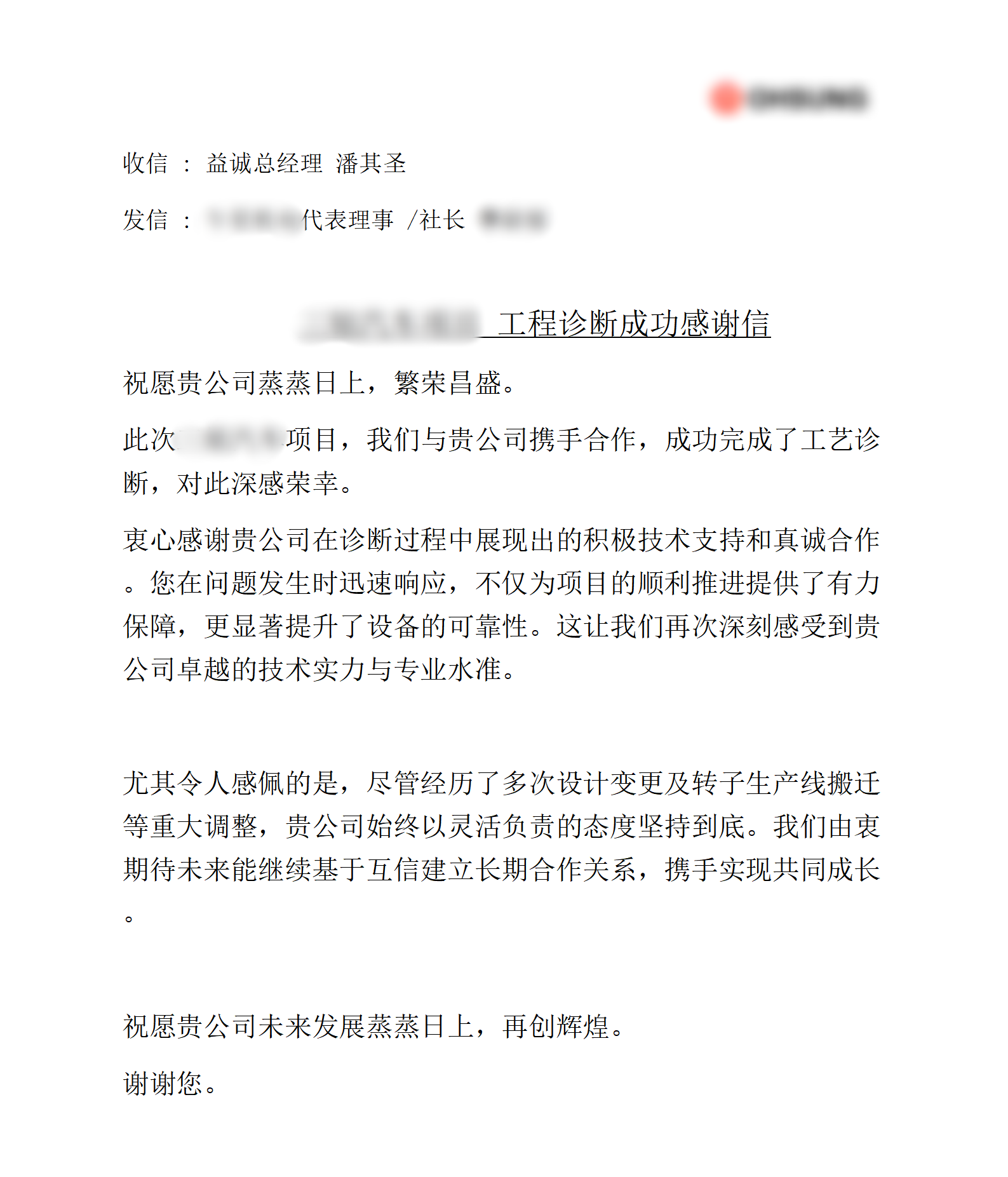 近日,超凡国际公司为某韩国知名客户量身打造的汽车马达自动化生产线项目取得重要阶段性成果,顺利完成核心阶段的全面工艺诊断工作。在该项目执行期间,超凡国际团队凭借高度定制化的解决方案、卓越的专业能力与出色的项目表现,赢得了客户的高度认可,喜获该客户方发出的官方书面感谢信。