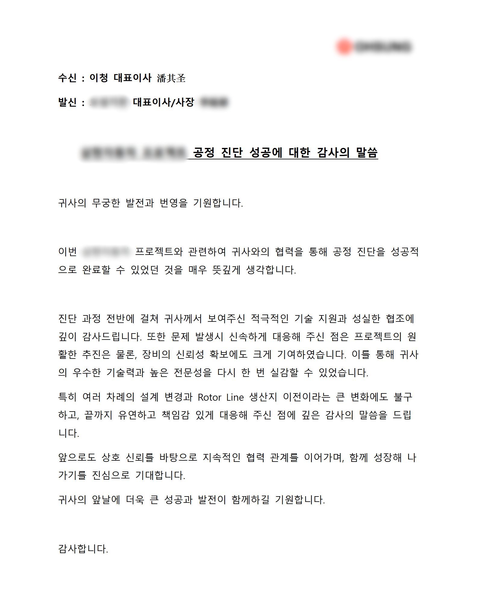 近日,超凡国际公司为某韩国知名客户量身打造的汽车马达自动化生产线项目取得重要阶段性成果,顺利完成核心阶段的全面工艺诊断工作。在该项目执行期间,超凡国际团队凭借高度定制化的解决方案、卓越的专业能力与出色的项目表现,赢得了客户的高度认可,喜获该客户方发出的官方书面感谢信。