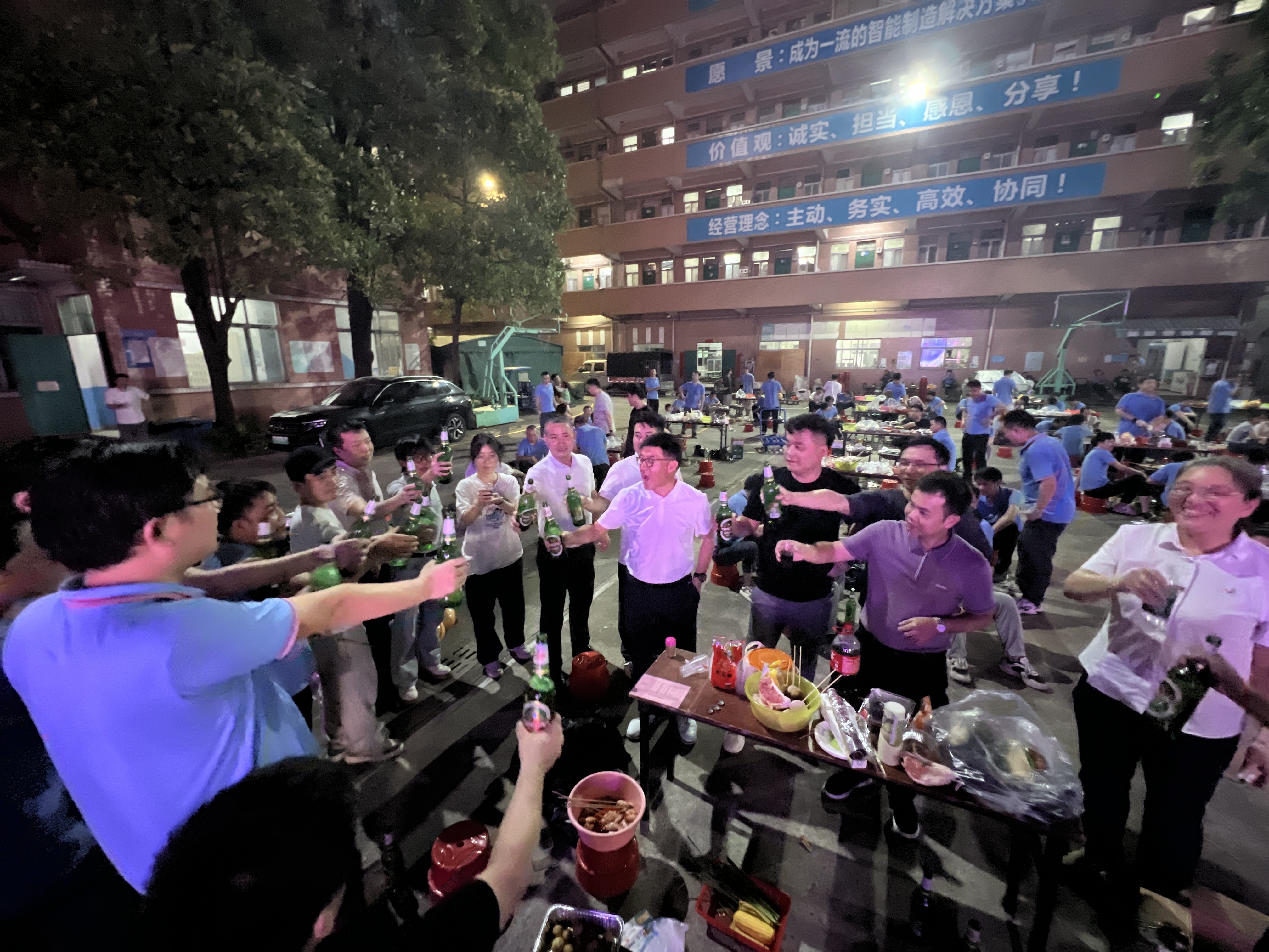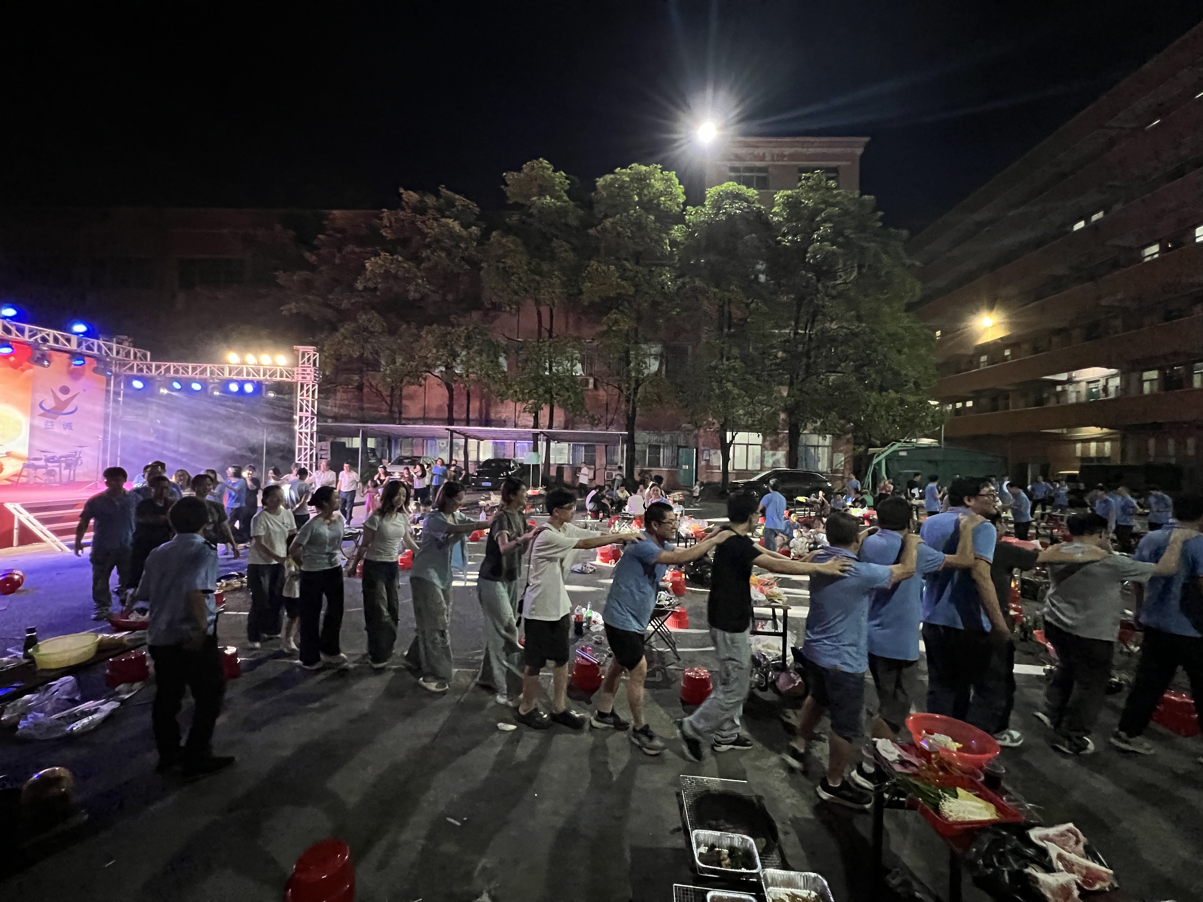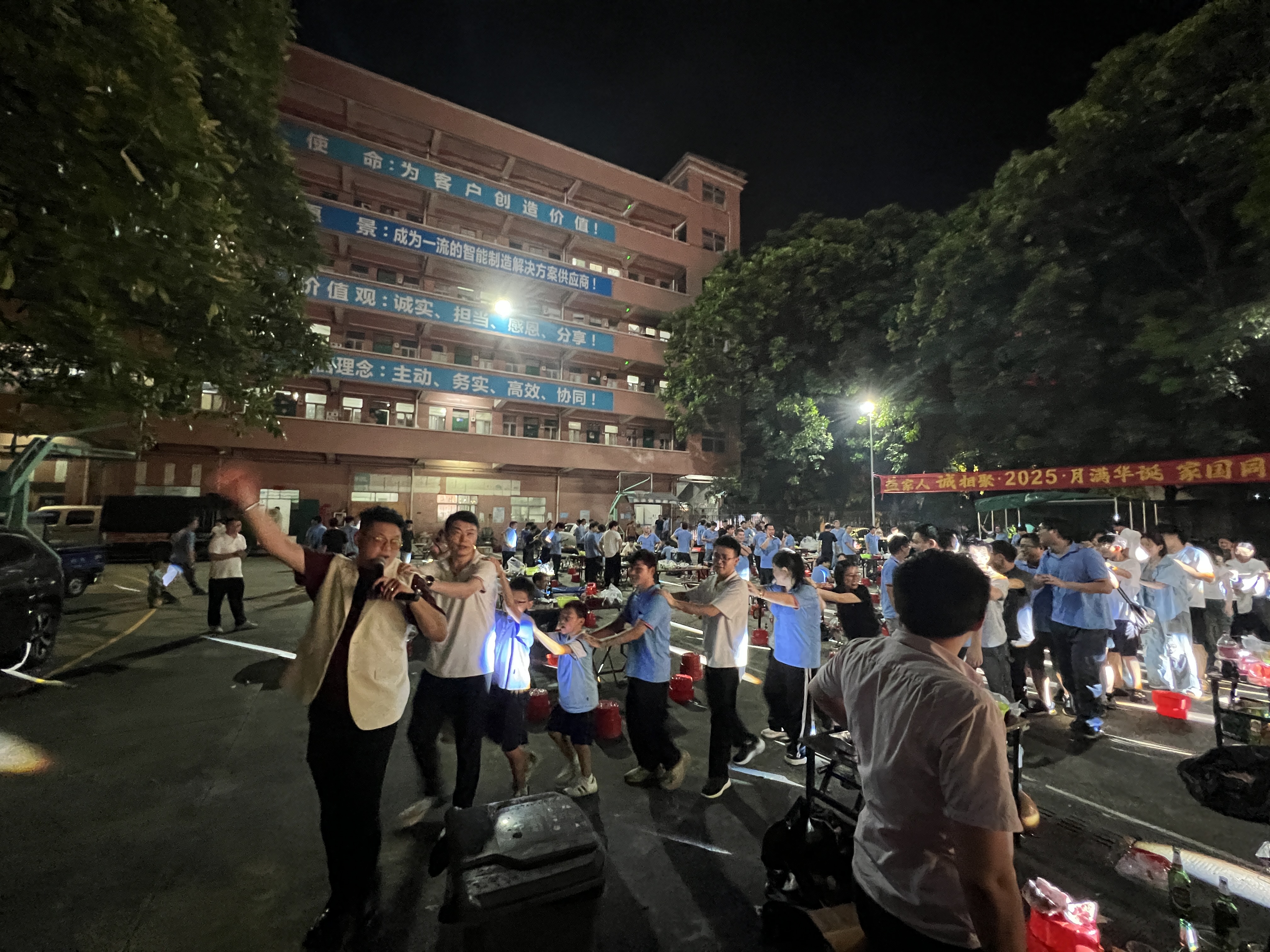 夜色渐浓,情谊愈深。随着主持人一声“开小火车啦!”,超凡国际家人们在笑声和欢呼声中迅速组成一条“长龙”,大家搭着肩,蜿蜒穿梭活动现场,载着喜悦奔向月光。