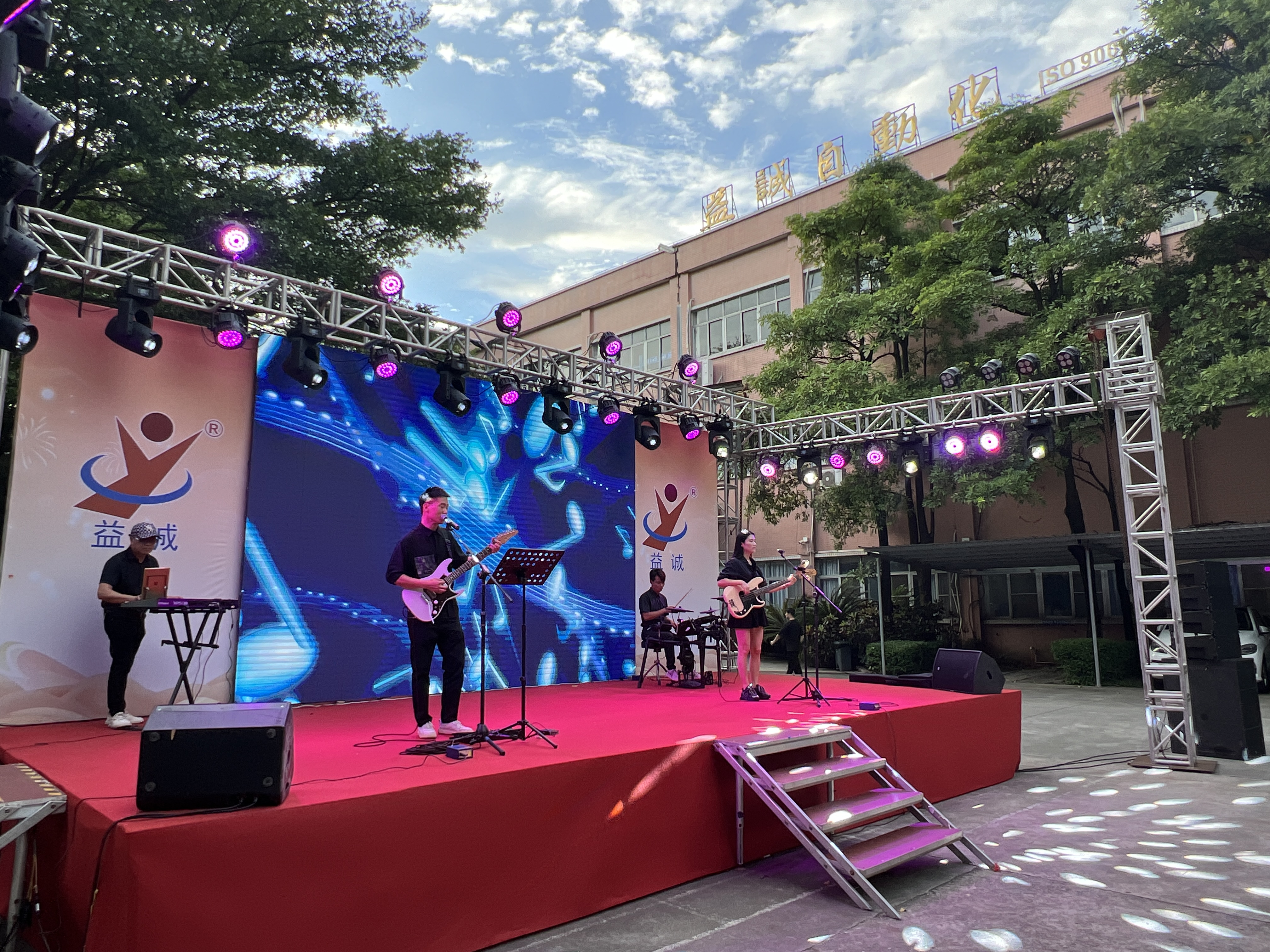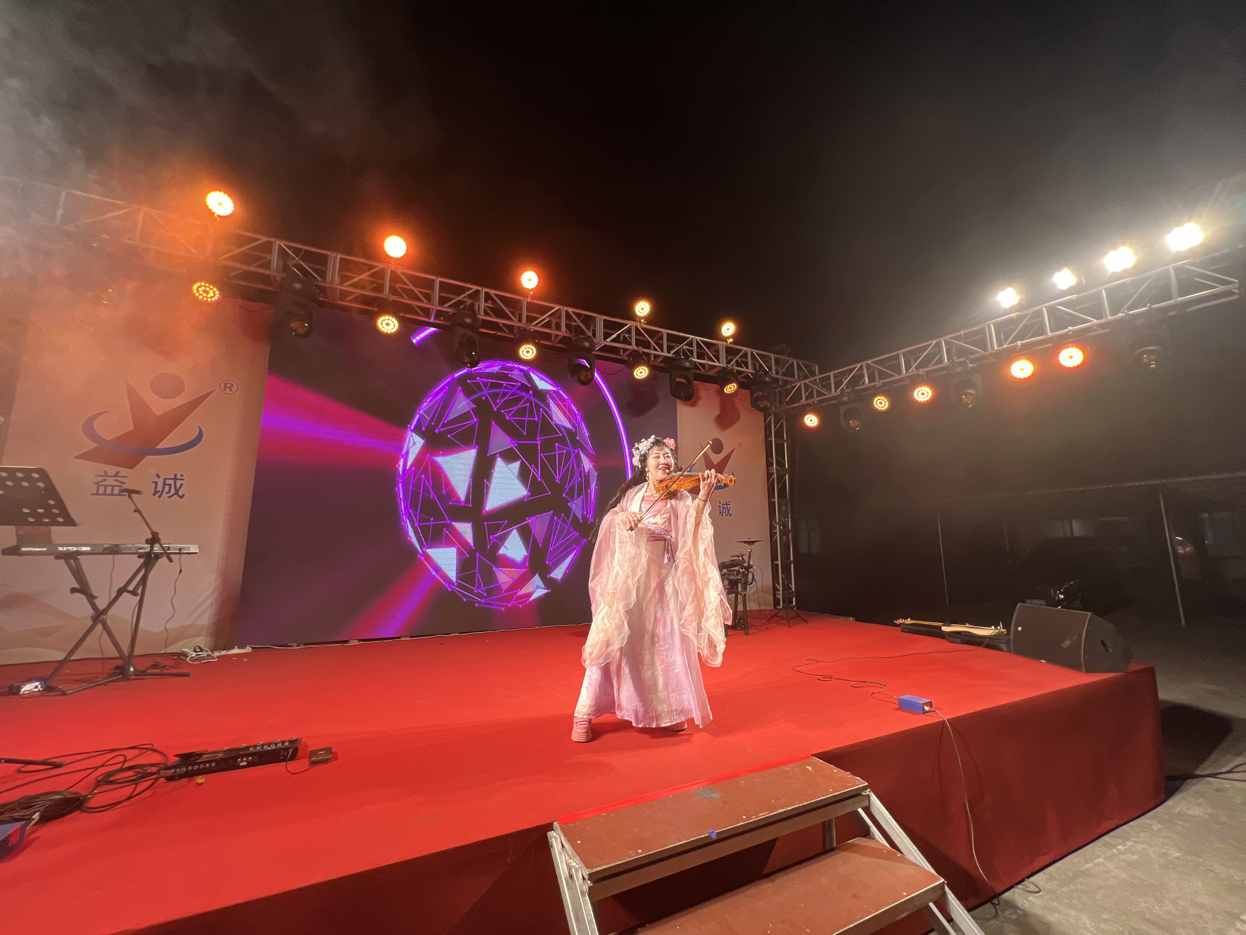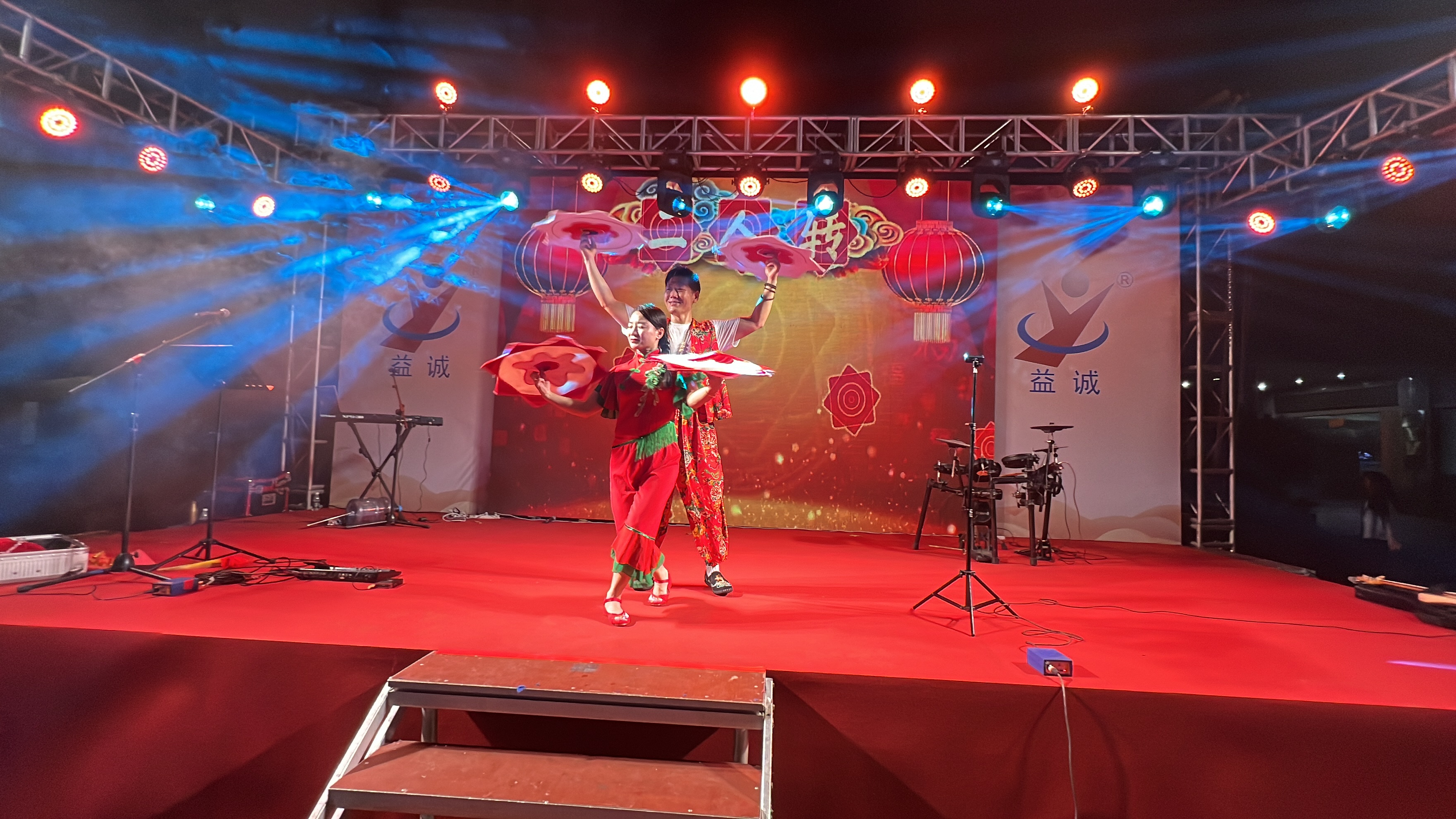 晚会由乐队演奏激情开场,吉他、贝斯与鼓点交织,瞬间引燃全场;舞者随音乐翩跹,动作柔美如风,光影间尽显优雅姿态;歌手深情演绎经典情歌;小提琴旋律悠扬动人;二人转表演幽默诙谐,互动趣味十足,笑声与掌声迭起,将晚会一次次推向高潮。