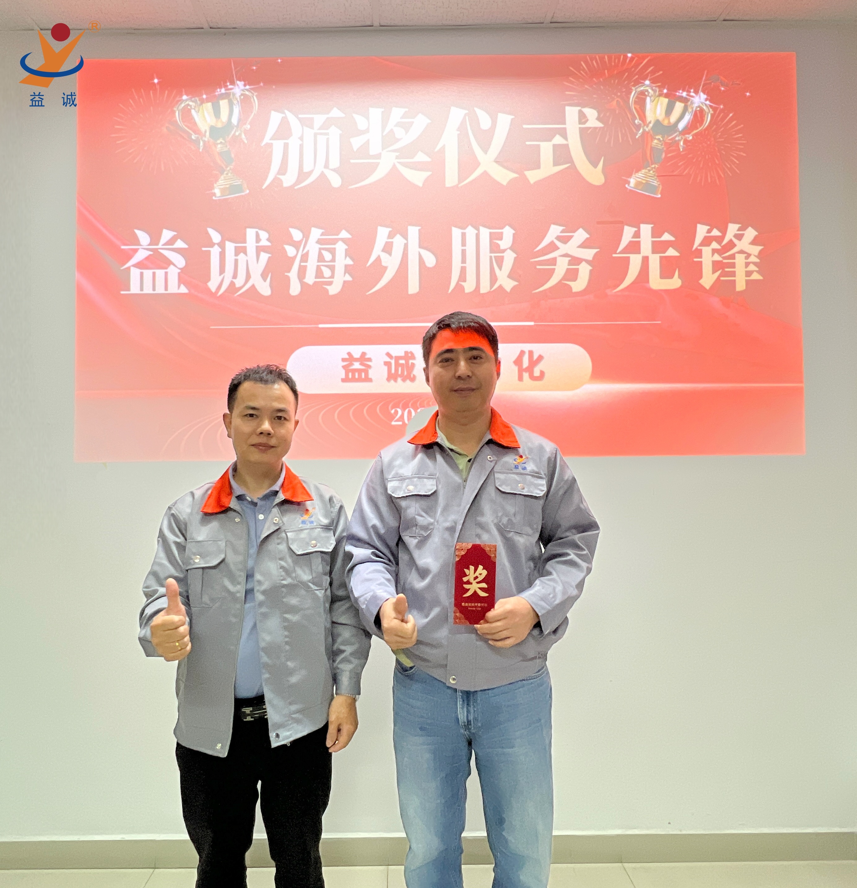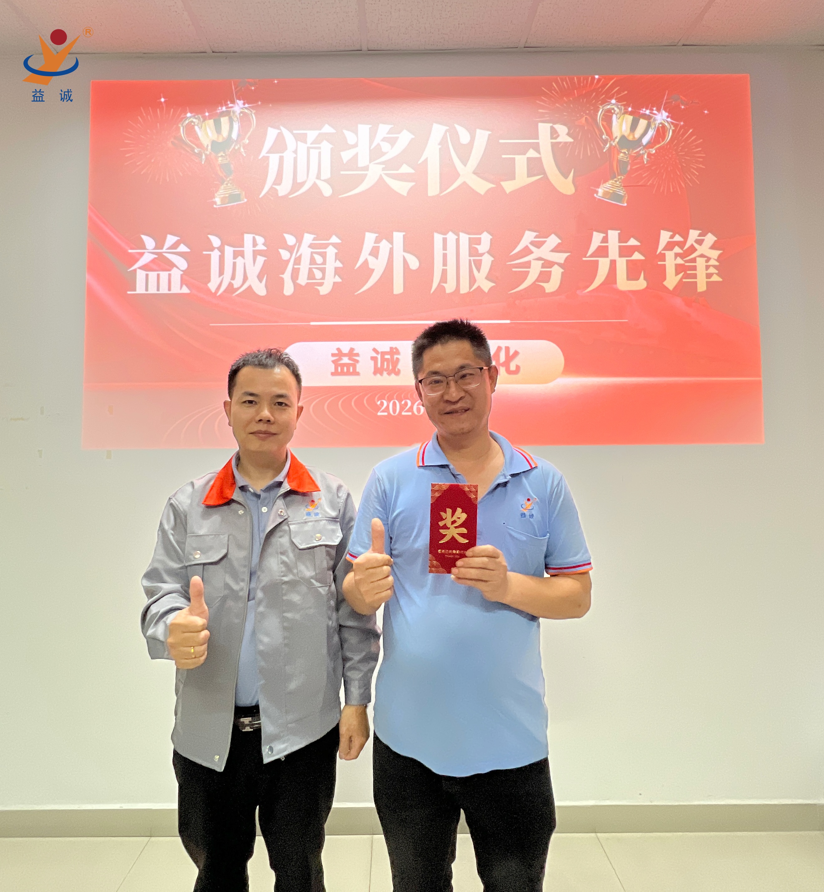 为表彰四位同仁在此次售后任务中的卓越贡献,在他们回国后,公司特意举办了表彰会。潘总经理亲自为他们颁发奖金。